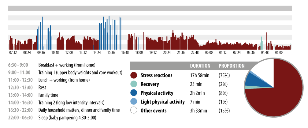 | Sunday: Stress and recovery analysis revealed relatively high stress levels. |